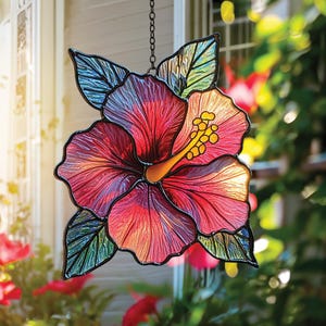 Stained Glass Cross Wildflowers Suncatcher – Flower Cross Gift For Religious Easter Faith Cross Home Decor – Christian Glass Windows Hanging