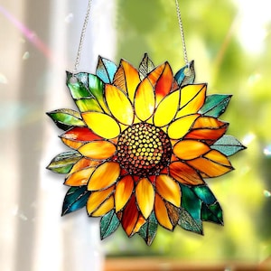 Sunflower Acrylic Suncatcher – Floral Faux Stained Glass Window Hanging, Garden Decor, Housewarming or Mother’s Day Gift for Mom
